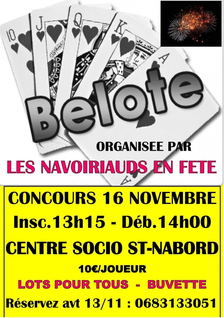 L'association "Les Navoiriauds en Fête" organise un concours de belote le dimanche 16 novembre au centre socioculturel de Saint-Nabord.
