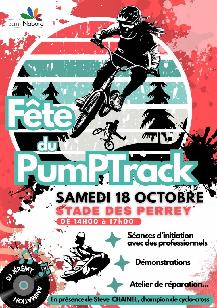 Nous vous donnons rendez-vous au stade des Perrey pour une GRANDE FÊTE DU PUMPTRACK en compagnie de Steve CHAINEL, champion de cyclo-cross le samedi 18 octobre 2025 de 14h à 17h au stade des Perrey