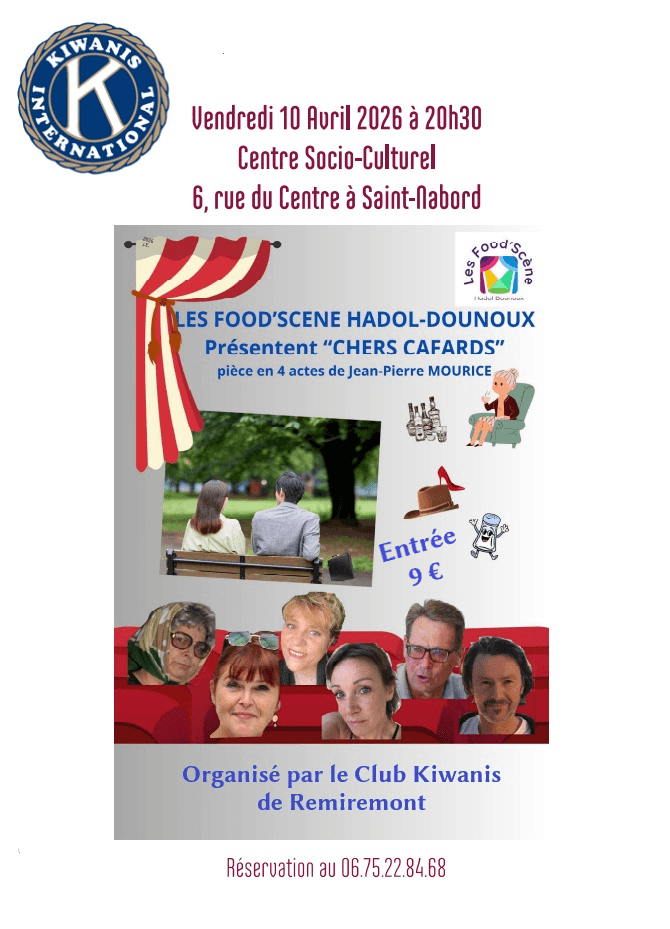 Le Kiwanis Club de Remiremont et son Président, Pascal Henry, ont choisi la scène navoiriaude pour programmer la pièce de théâtre  «Chers cafards », une comédie en 4 actes de Jean-Pierre Mourice, interprétée par la troupe les Food'Scène ».